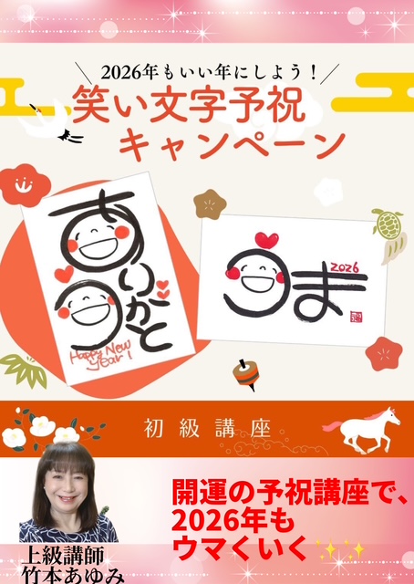 ご一緒に満面の笑みの「笑い文字」を書いて渡し、感謝と喜びが循環してみんな幸せに。