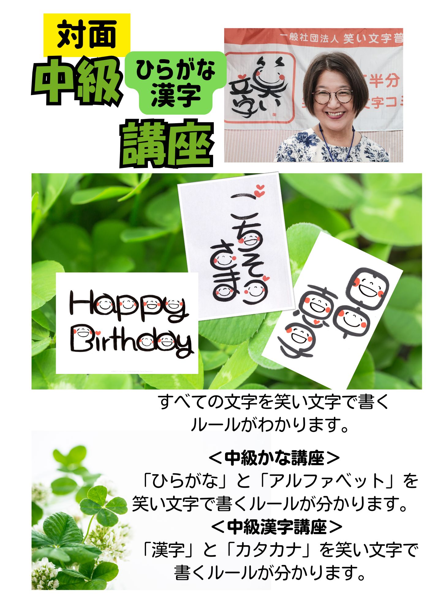【残席あり】 【対面】中級講座(かな漢字セット講座)inひたちなか市 1/31:2/1 すべての文字を笑い文字で書くルールがわかるから書けるようになります | 飛田 祥子
