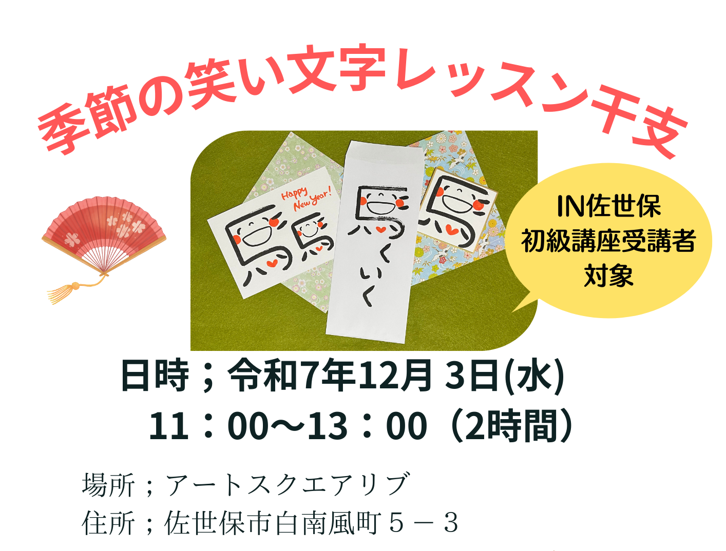 【残席あり】 季節を楽しむ12か月の笑い文字レッスン干支 IN佐世保 12月3日(水)11:00~13:00 | 笹部 亜矢子