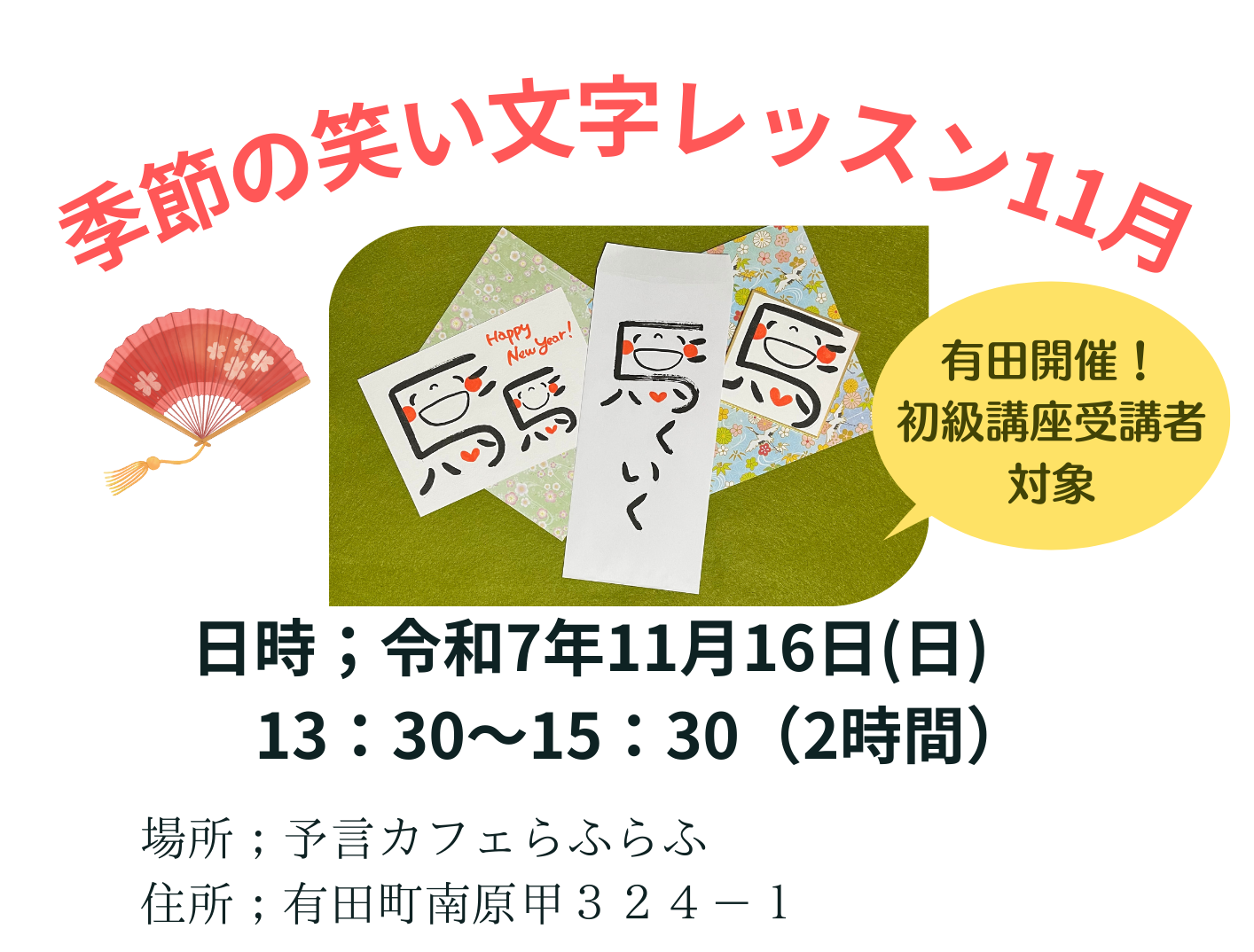 【残席あり】 季節を楽しむ12か月の笑い文字レッスン11月 IN有田 11月16日(日)13:00~15:00 | 笹部 亜矢子